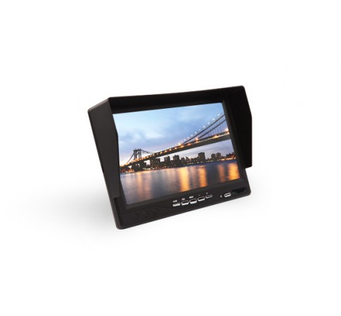 AM7080A1 7인치TFT LCD 칼라모니터는800X480픽셀(52만화소 CVBS와  , AHD옵션 모니터 52만화소 CVBS ALC,HD 92만화소,AHD200만화소 자동선택)의 고화질의 LCD판넬을 사용하며 2채널의 영상입력 단자를 가지고 차량,중장비등의 전후방카메라등의 영상모니터용으로 사용되면 입력전압이 DC 6~38V범위의 공급전압으로 사용되며 후방카메라입력시 자동신호 인식감지기능에의하여 후방입력신호 가인가되면 자동으로 모니터가 켜지며 옵션으로 리모콘으로 전원온오프등 각종기능을 조정가능하며 거치대는 유리흡착거치대,오리발거치대등 으로 진동에도 견딜수 있도록 견고하게 고정하는 구조로 되어 있습니다.2.4GHZ의 무선송수신기와 연결시 무선 전후방모니터로도 사용 가능 합니다.